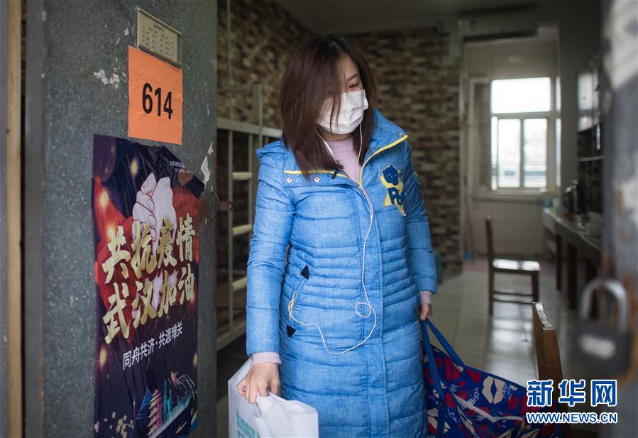 3月12日,黎婧收拾完行李,走出這間待了14天的房間。 3月12日,插畫師黎婧和84位病友離開自己居住的武漢軟件工程職業(yè)學(xué)院康復(fù)驛站,回到自己家中。他們都是治愈出院的新冠病毒肺炎患者,已經(jīng)在武漢軟件工程職業(yè)學(xué)院康復(fù)驛站進(jìn)行了14天醫(yī)學(xué)觀察,達(dá)到醫(yī)學(xué)標(biāo)準(zhǔn),成功解除隔離。他們由專車運(yùn)送至所屬社區(qū)附近的集散點(diǎn)后,在社區(qū)工作人員的陪同下回家。 新華社記者 肖藝九 攝