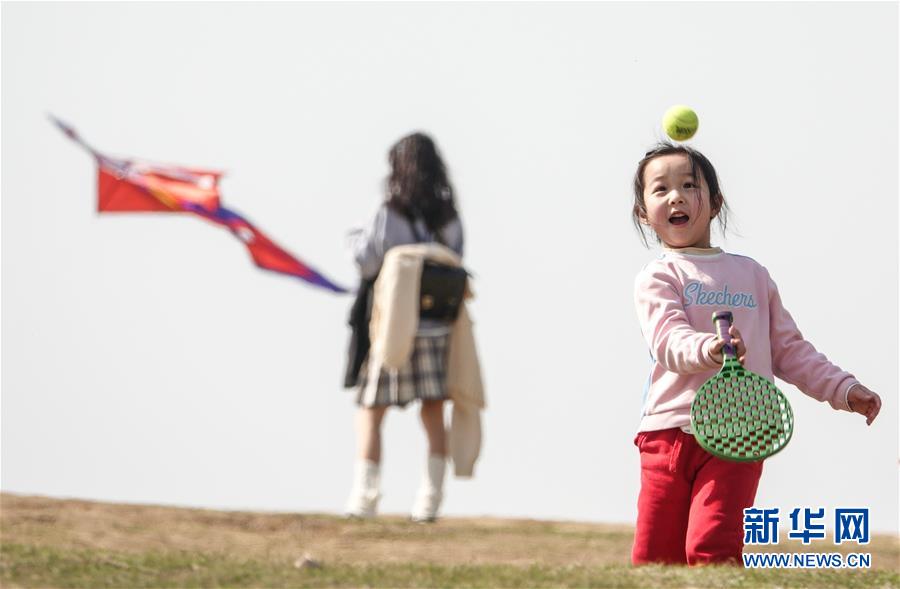 3月15日,一名小朋友在南京東郊體育公園練習(xí)兒童網(wǎng)球。 當(dāng)日,南京風(fēng)和日麗,市民們來(lái)到東郊體育公園,踏青春游。 新華社記者 楊磊 攝