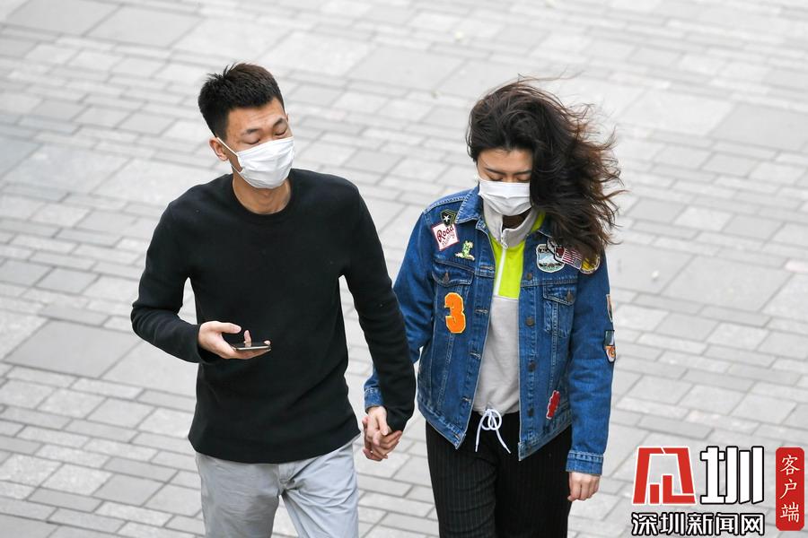 北京八九級(jí)大風(fēng)進(jìn)城,路人頭發(fā)被吹亂。