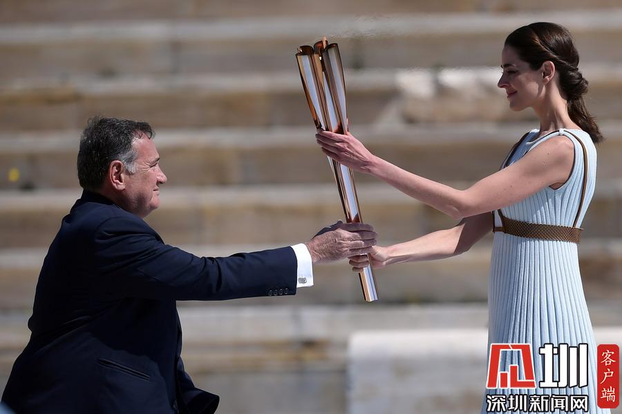 2020年3月18日,2020年東京奧運(yùn)會(huì)火炬交接儀式在希臘雅典帕納辛奈科體育場舉行。