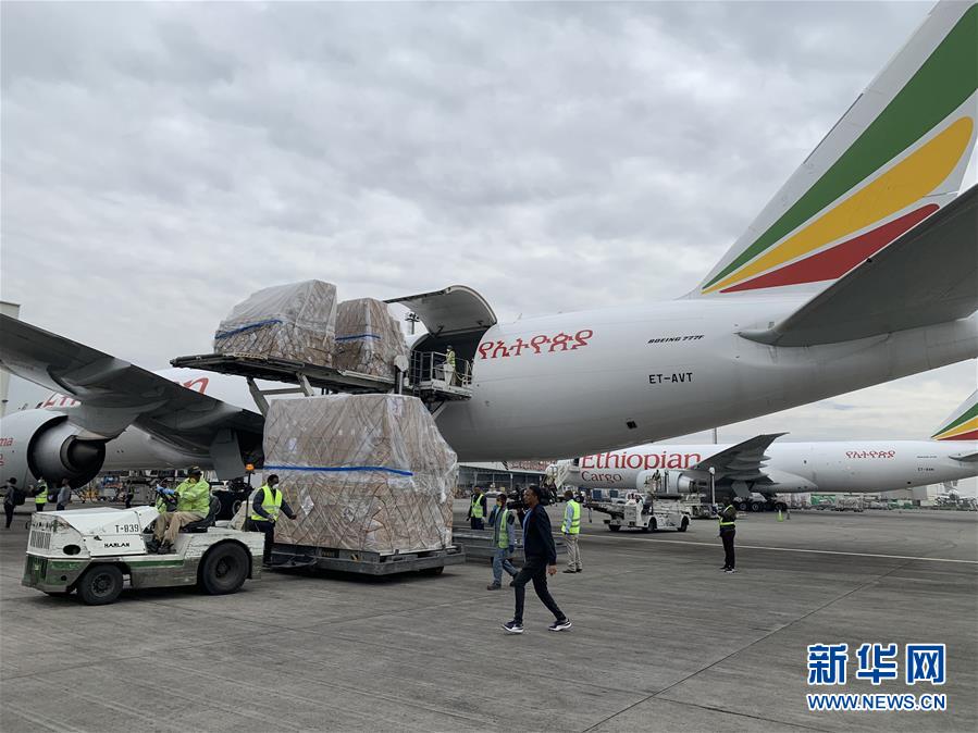 3月22日,在埃塞俄比亞首都亞的斯亞貝巴國(guó)際機(jī)場(chǎng),工作人員將中國(guó)援助的抗疫物資運(yùn)下飛機(jī)。歷時(shí)10小時(shí)飛行,滿載著來自中國(guó)抗疫物資的埃航貨運(yùn)包機(jī)22日上午抵達(dá)埃塞俄比亞首都亞的斯亞貝巴的國(guó)際機(jī)場(chǎng),這是馬云公益基金會(huì)和阿里巴巴公益基金會(huì)捐贈(zèng)非洲的部分醫(yī)療物資,用于支援非洲54國(guó)抗擊疫情。新華社記者王守寶攝