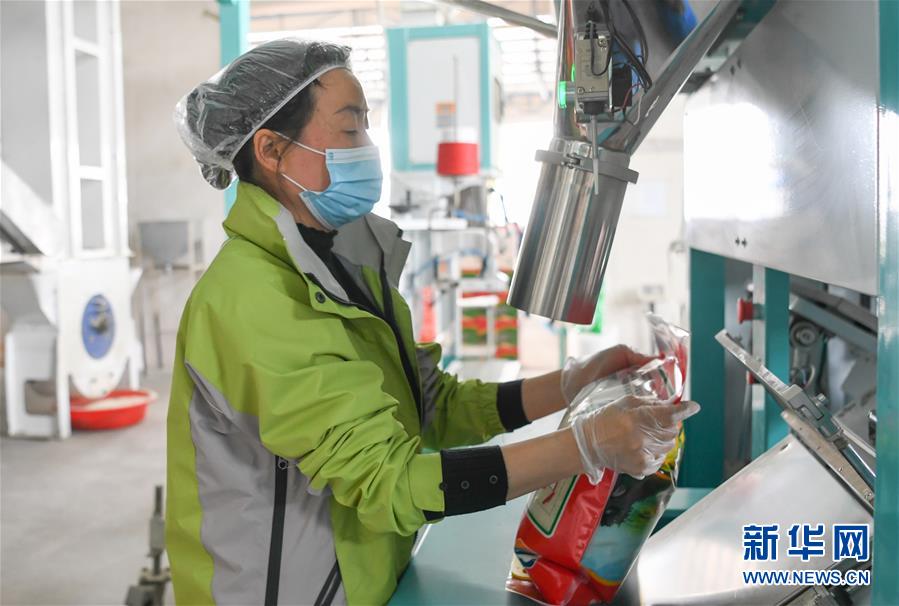 湖北當(dāng)陽(yáng)市壩陵辦事處群華村村民宋發(fā)林(右)和妻子在農(nóng)產(chǎn)品合作社包裝產(chǎn)品,準(zhǔn)備通過(guò)電商外銷(xiāo)(3月21日攝)。近日,湖北當(dāng)陽(yáng)市農(nóng)業(yè)生產(chǎn)和農(nóng)產(chǎn)品加工加速恢復(fù)。截至3月19日,當(dāng)陽(yáng)市86家規(guī)上農(nóng)產(chǎn)品加工企業(yè)復(fù)工復(fù)產(chǎn)率為84.9%,51家農(nóng)業(yè)產(chǎn)業(yè)化重點(diǎn)龍頭企業(yè)有48家復(fù)工復(fù)產(chǎn),占比達(dá)94.1%。新華社記者程敏攝