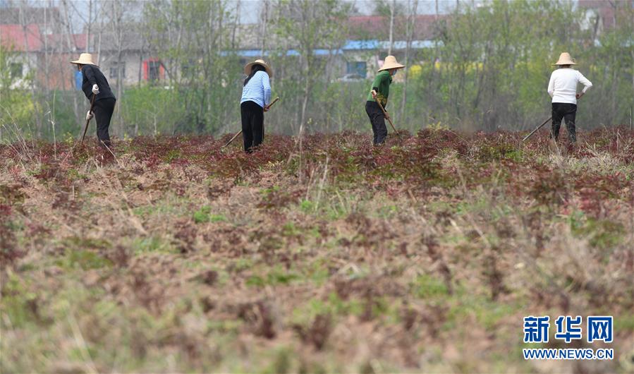 湖北當(dāng)陽(yáng)市壩陵辦事處群華村農(nóng)民在中藥材白芍田里除草(3月21日攝)。近日,湖北當(dāng)陽(yáng)市農(nóng)業(yè)生產(chǎn)和農(nóng)產(chǎn)品加工加速恢復(fù)。截至3月19日,當(dāng)陽(yáng)市86家規(guī)上農(nóng)產(chǎn)品加工企業(yè)復(fù)工復(fù)產(chǎn)率為84.9%,51家農(nóng)業(yè)產(chǎn)業(yè)化重點(diǎn)龍頭企業(yè)有48家復(fù)工復(fù)產(chǎn),占比達(dá)94.1%。新華社記者程敏攝