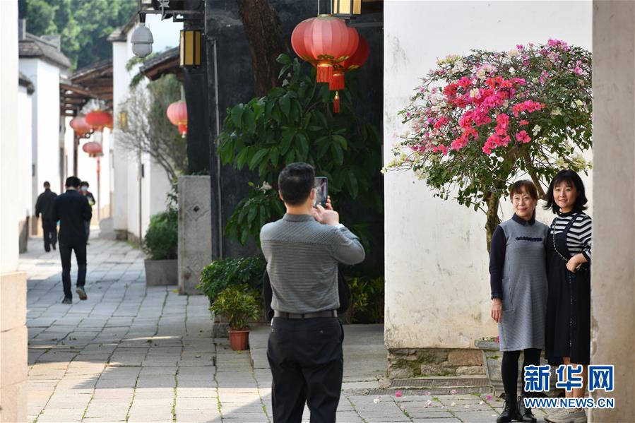 3月22日,在福州三坊七巷歷史文化街區(qū)內,游客在一株盛開的三角梅前拍照留念。近日,福建省福州市烏山、三坊七巷等歷史文化街區(qū)內草木吐綠,鮮花盛開,掩映著一座座傳統(tǒng)古厝,更顯濃濃春意。新華社記者姜克紅攝