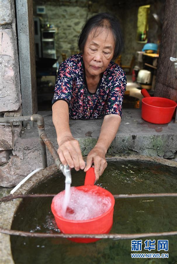 在廣西都安瑤族自治縣龍灣鄉(xiāng)琴棋村琴嶺屯,村民在接從水柜里引來的自來水(2019年7月23日攝)。廣西有近一半貧困人口生活在石漠化地區(qū),涉及數(shù)十個(gè)縣區(qū)。這里也是廣西飲水保障程度最低的地區(qū),解決貧困人口飲水問題是廣西脫貧攻堅(jiān)戰(zhàn)“硬仗中的硬仗”。“十三五”以來,廣西加快實(shí)施農(nóng)村飲水安全鞏固提升工程。因地制宜,采取新建、擴(kuò)建及管網(wǎng)延伸等多種措施,補(bǔ)齊貧困地區(qū)水利薄弱短板,進(jìn)一步提升石漠化地區(qū)群眾飲水安全保障水平,助推脫貧攻堅(jiān)。新華社記者陸波岸攝