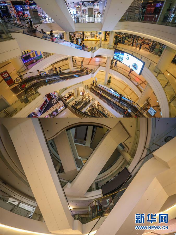 這是3月21日拍攝的泰國曼谷暹羅百麗宮商場(上圖)和3月22日拍攝的停止營業(yè)的商場的對比圖。