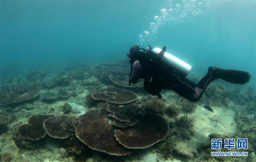 3月28日,在位于海南三亞蜈支洲島旅游區(qū)的海洋牧場,工作人員在進行巡護。近日,位于海南三亞蜈支洲島旅游區(qū)的海洋牧場復工,海底作業(yè)逐漸恢復正常,開始進行人工魚礁吊裝擺位、水下監(jiān)控清理以及日常巡護等工作。據(jù)介紹,人工魚礁有利于魚類種類增加和數(shù)量提高,蜈支洲島海域海洋牧場人工魚礁表面附著珊瑚、貝類、藻類等生物種類達120余種。新華社記者楊冠宇攝