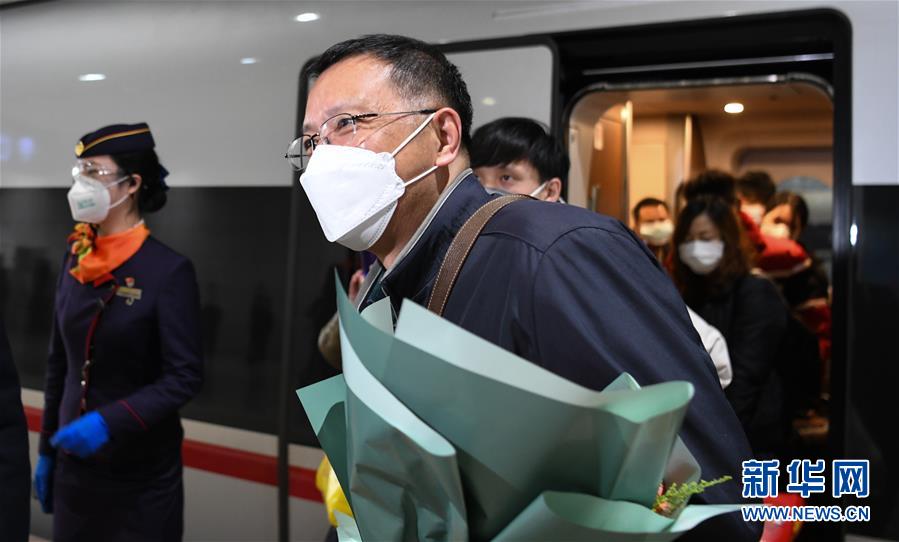3月28日,從廣州南始發(fā)的G1112次列車到達武漢站,旅客下車。新華社記者程敏攝
