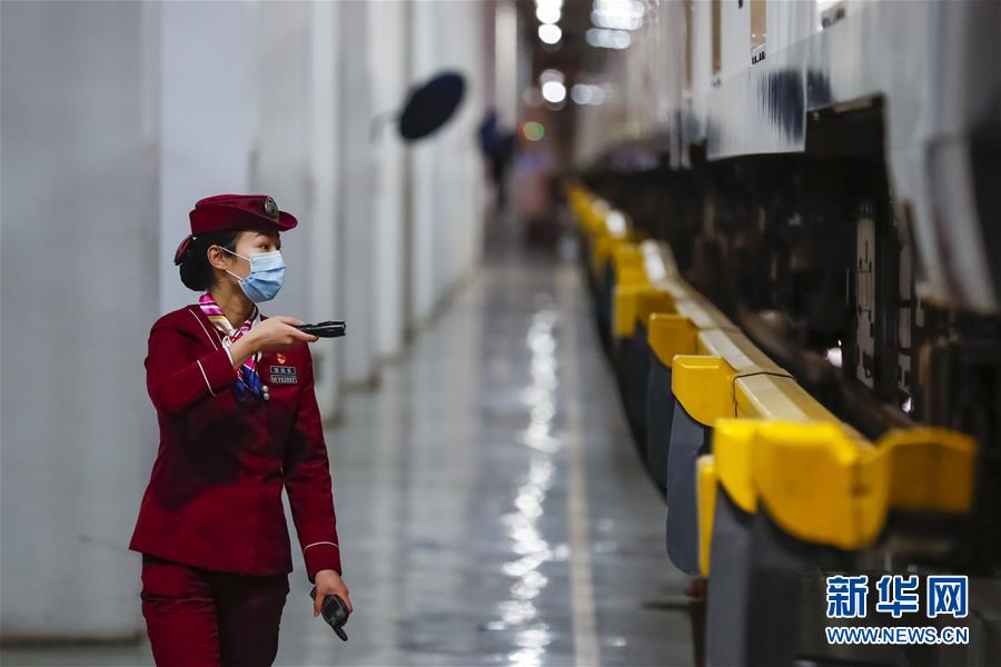 3月28日,武漢地鐵運(yùn)營有限公司司機(jī)吳亞在常青車輛段檢查車輛情況。新華社記者沈伯韓攝