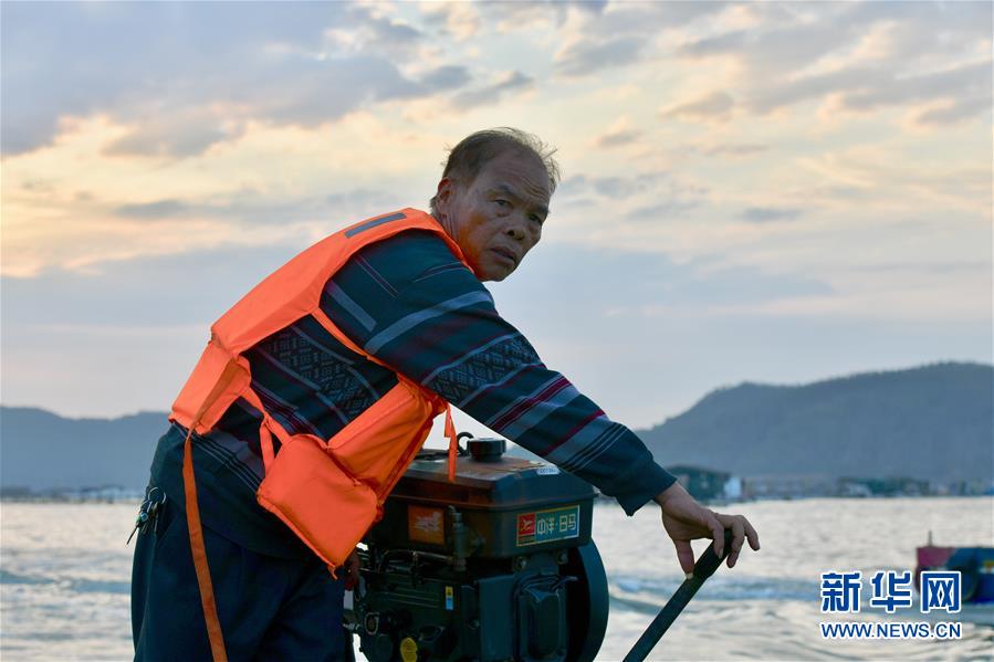 3月26日,福建漳州東山縣岐下村村民陳炎松駕駛著小舢板由魚(yú)骨沙洲景點(diǎn)返回碼頭。新華社記者姜克紅攝
