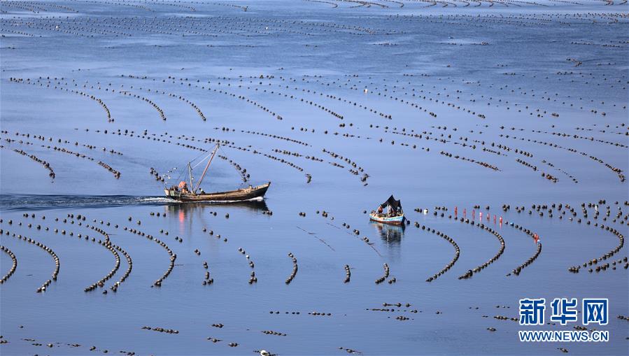 這是11月4日無人機(jī)拍攝的霞浦縣三沙鎮(zhèn)的紫菜種植區(qū)。近日,福建省霞浦縣沿海6萬畝紫菜迎來收獲季節(jié),漁民們出海收獲紫菜,海上田園一派繁忙豐收景象。新華社記者姜克紅攝