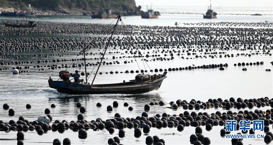 目前正是遼寧省大連市長??h扇貝和魚類收獲的季節(jié),長海縣小長山島海域經(jīng)典國家級(jí)海洋牧場呈現(xiàn)出一片繁忙的豐收景象。