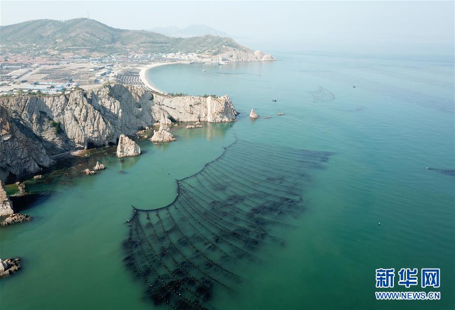 這是大欽島鄉(xiāng)附近海域的海帶養(yǎng)殖區(qū)(5月23日無人機(jī)拍攝)。新華社記者朱崢攝