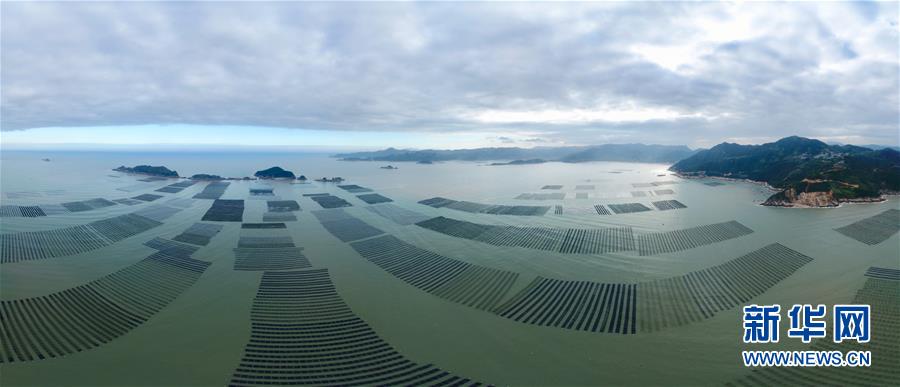 這是11月4日無人機(jī)拍攝的霞浦縣長春鎮(zhèn)的紫菜種植區(qū)(拼接照片)。近日,福建省霞浦縣沿海6萬畝紫菜迎來收獲季節(jié),漁民們出海收獲紫菜,海上田園一派繁忙豐收景象。新華社記者姜克紅攝