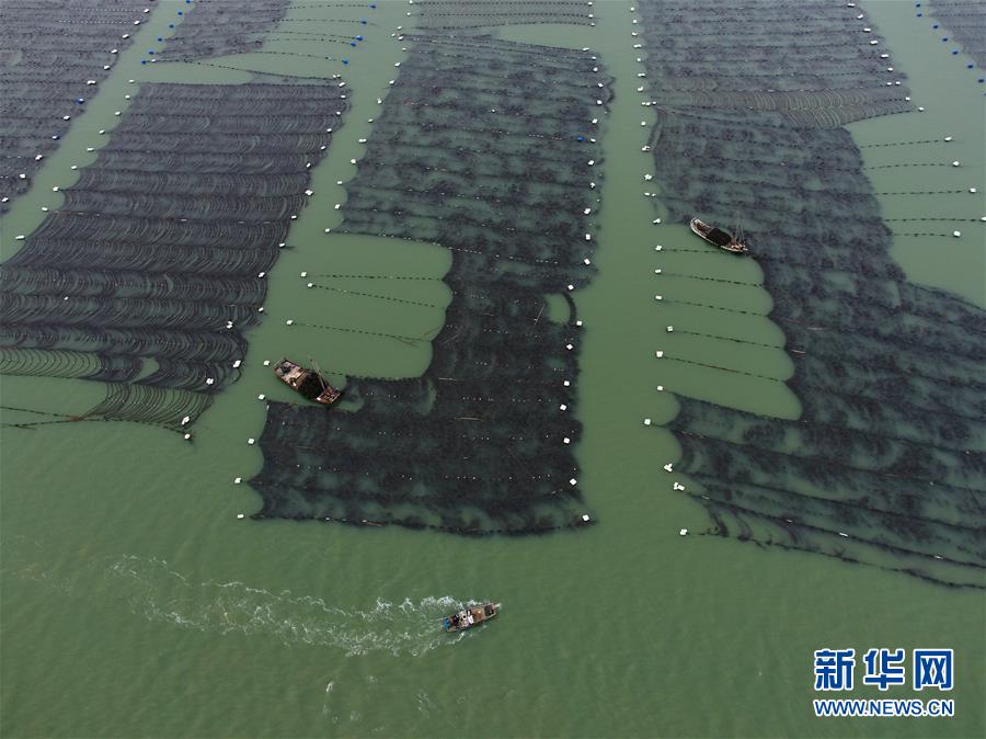 近日,福建省莆田市湄洲灣北岸蔣山村的2000多畝種植紫菜進(jìn)入收割旺季,當(dāng)?shù)卮迕駬屖疹^水紫菜。蔣山村現(xiàn)有200多家紫菜種植戶,紫菜種植成為當(dāng)?shù)卮迕裨鍪罩赂坏闹饕a(chǎn)業(yè)。