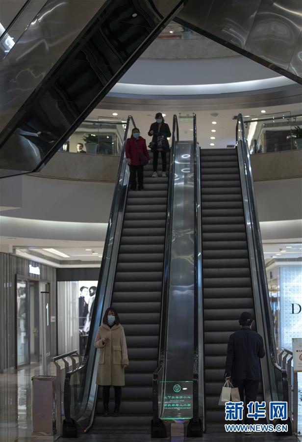 3月30日,在武商國際廣場(chǎng),顧客乘坐滾梯。當(dāng)日,武漢市多家商場(chǎng)開門迎客。新華社記者費(fèi)茂華攝