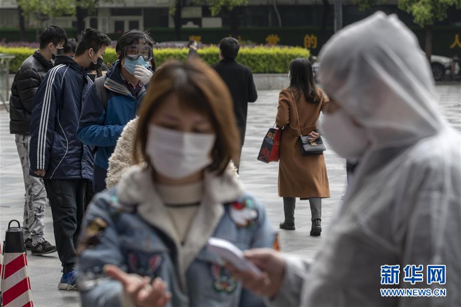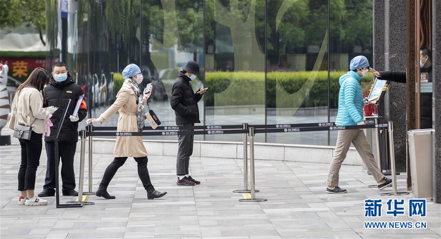 3月30日,顧客排隊(duì)進(jìn)入武商國際廣場(chǎng)。當(dāng)日,武漢市多家商場(chǎng)開門迎客。新華社記者費(fèi)茂華攝