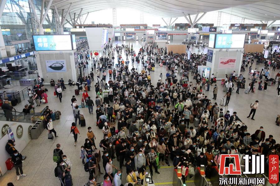 2020年3月28日,廣東深圳,周末的深圳北站客流量增大。