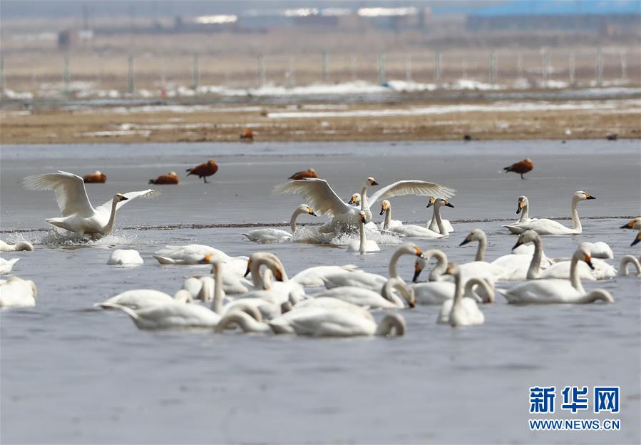 這是4月1日在張北縣黃蓋淖國(guó)家濕地公園拍攝的候鳥(niǎo)。 新華社記者楊世堯攝