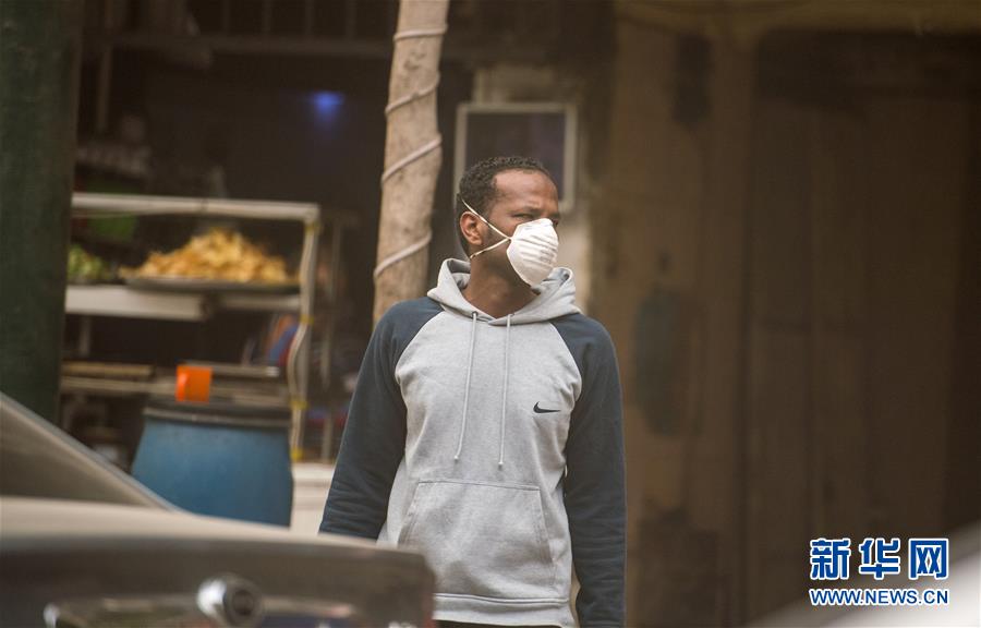 這是4月5日在埃及首都開(kāi)羅拍攝的戴口罩的行人。