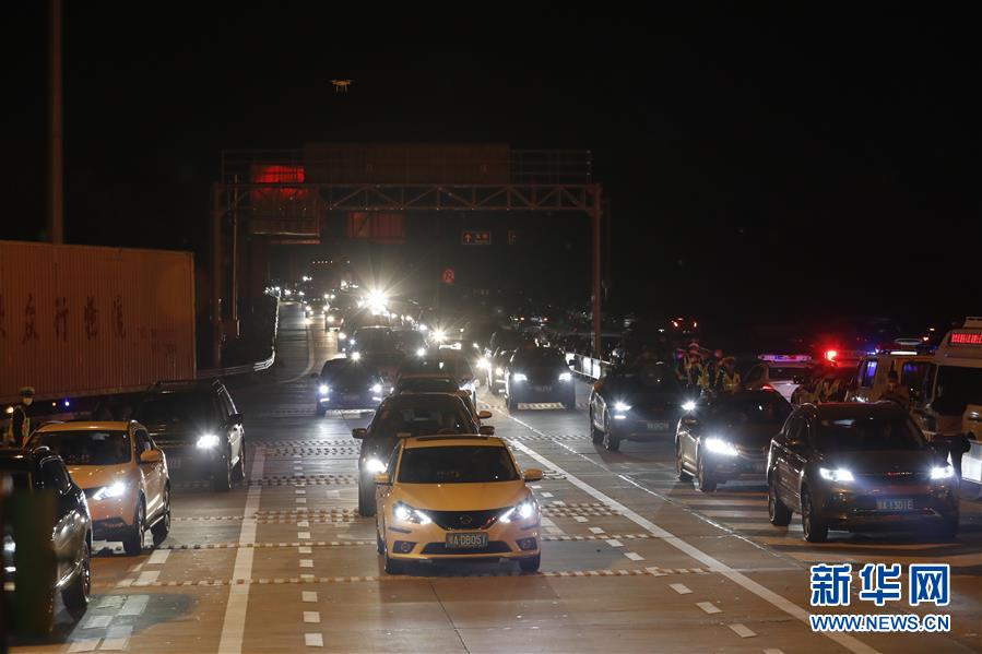 4月8日凌晨,車輛通過(guò)武漢西高速收費(fèi)站(無(wú)人機(jī)拍攝)。 新華社記者 沈伯韓 攝
