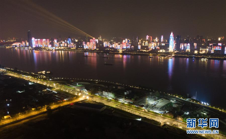 4月8日零時(shí)起,武漢市正式解除離漢離鄂通道管控措施,全市景觀(guān)照明開(kāi)啟(無(wú)人機(jī)拍攝)。新華社記者程敏攝