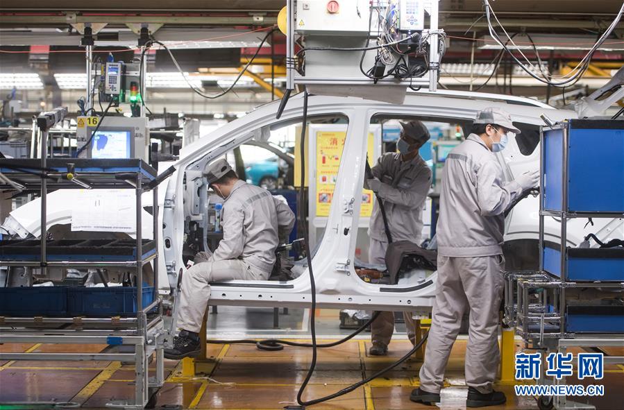 3月24日,工人在東風(fēng)乘用車(chē)公司工廠總裝車(chē)間流水線(xiàn)上作業(yè)。 新華社記者 肖藝九 攝