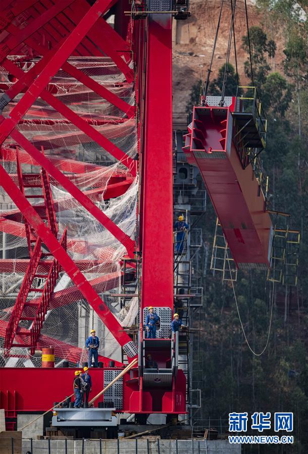 4月8日清晨,工人在中老鐵路元江特大橋上進(jìn)行鋼桁梁架設(shè)作業(yè)(無人機(jī)照片)。4月7日,中老鐵路全線重點(diǎn)控制性工程——元江特大橋迎來關(guān)鍵節(jié)點(diǎn),主橋鋼桁梁正式“邁”過154米高的主橋墩,這是世界同類鐵路橋梁第一高墩。元江特大橋位于云南省元江縣,采用上承式連續(xù)鋼桁梁跨越峽谷,全長832.2米,建成后,其249米的主跨也將刷新國內(nèi)同類橋梁跨度紀(jì)錄。新華社記者江文耀攝