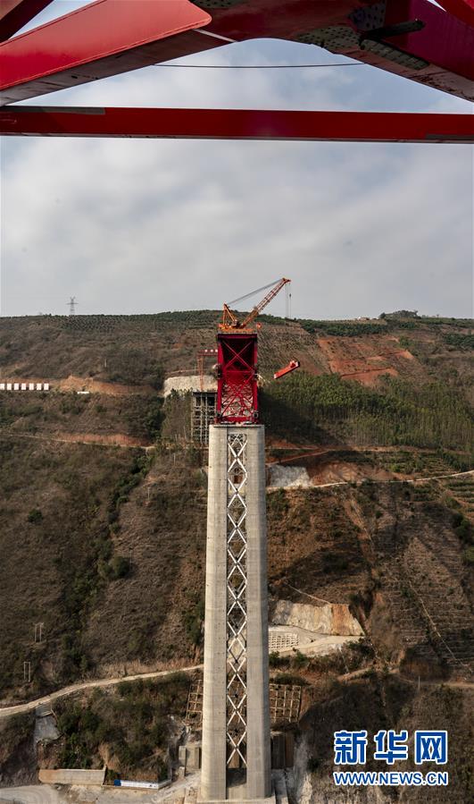 4月8日,中鐵四局的工人們進行鋼桁梁架設作業(yè)。新華社記者江文耀攝