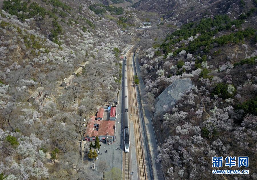 4月8日,北京青龍橋火車站附近春花盛開(無人機(jī)照片)。 新華社記者張晨霖?cái)z