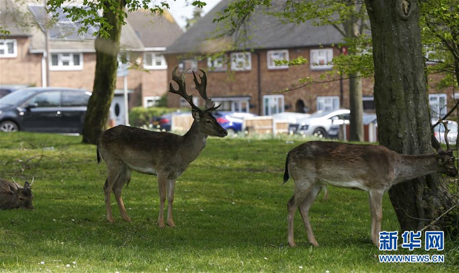 4月8日,在英國倫敦東部一個居民區(qū),附近公園里的鹿在草坪上駐足。隨著新冠疫情在英國的擴(kuò)散,政府要求人們減少不必要的外出。倫敦東部一個居民區(qū)附近公園里原來散養(yǎng)的鹿紛紛從公園走出來,或吃草或接受附近居民的喂食,成為特殊時(shí)期居民區(qū)里的新“客人”。新華社記者韓巖攝
