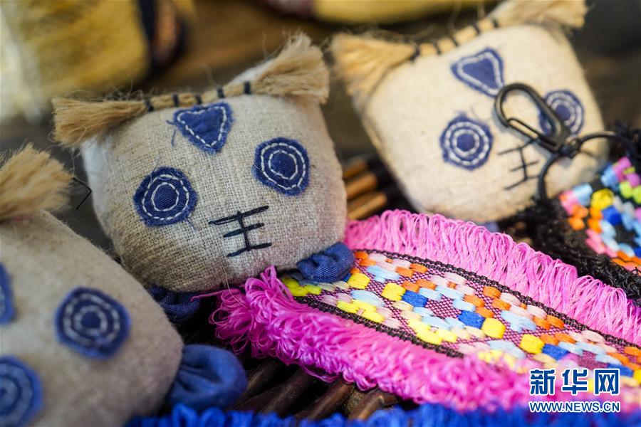 這是重慶石柱中益鄉(xiāng)巾幗扶貧工坊內(nèi)展示的當(dāng)?shù)貗D女制作的土家族風(fēng)情鑰匙扣(4月8日攝)。近年來(lái),重慶市石柱土家族自治縣中益鄉(xiāng)在重慶市婦聯(lián)的幫助下,以當(dāng)?shù)胤沁z傳統(tǒng)技藝作為結(jié)合點(diǎn),把扶貧與扶志、扶智相結(jié)合,通過(guò)引進(jìn)外來(lái)文創(chuàng)企業(yè)對(duì)留守婦女、貧困及殘疾人群進(jìn)行刺繡培訓(xùn),設(shè)立巾幗扶貧工坊等多種形式,幫助當(dāng)?shù)卮迕駥?shí)現(xiàn)就業(yè)增收。據(jù)介紹,巾幗扶貧工坊運(yùn)行以來(lái),為當(dāng)?shù)仃懤m(xù)開(kāi)發(fā)出土家族布老虎、手提袋、餐墊繡邊、創(chuàng)意相框等一系列文創(chuàng)產(chǎn)品,幫助參加巾幗扶貧工坊的留守婦女和貧困村民實(shí)現(xiàn)月均增收近千元。新華社記者劉潺攝
