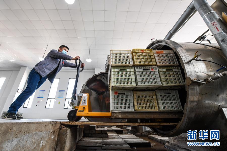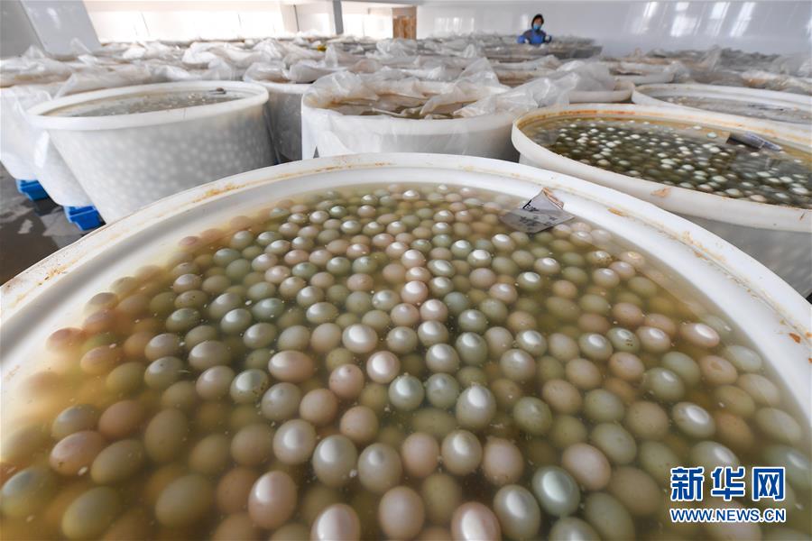 在江蘇高郵鴨集團(tuán)生產(chǎn)車間,腌制好的鴨蛋準(zhǔn)備進(jìn)行清洗包裝作業(yè)(4月15日攝)。“高郵鴨蛋”是江蘇高郵的特色農(nóng)業(yè)名片。近年來,當(dāng)?shù)卦诹挤N繁育、生態(tài)養(yǎng)殖、產(chǎn)品加工等方面加大力度,推動(dòng)高郵鴨蛋品牌化建設(shè),讓小鴨蛋成為帶動(dòng)農(nóng)戶致富的大產(chǎn)業(yè)。2019年,高郵市共計(jì)生產(chǎn)熟制鴨蛋產(chǎn)品近11.2億枚,年產(chǎn)值近17.68億元。新華社記者李博攝