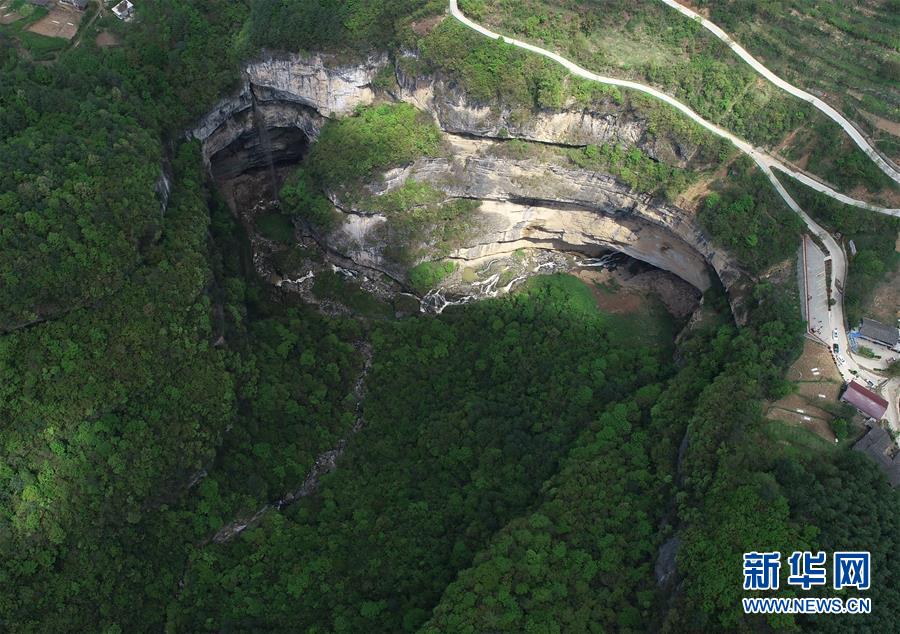4月22日無人機拍攝的地洞河天坑。新華社記者張博文攝