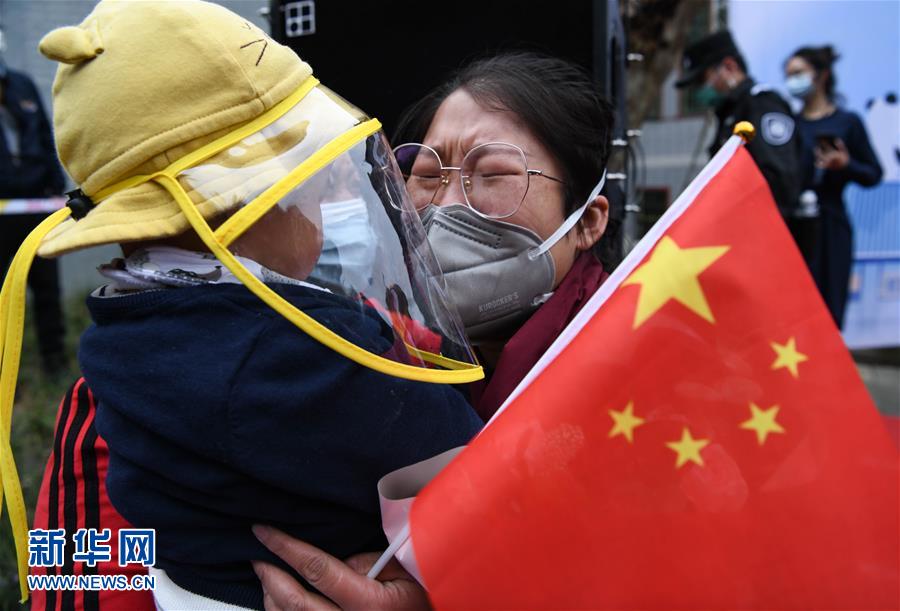 4月21日,在四川大學(xué)華西醫(yī)院,醫(yī)療隊(duì)隊(duì)員緊緊抱住許久未見的孩子。當(dāng)日,來(lái)自四川大學(xué)華西醫(yī)院、華西第二醫(yī)院、華西第四醫(yī)院的醫(yī)療隊(duì)隊(duì)員解除隔離休整,與分別許久的家人、同事團(tuán)聚,緊緊相擁。新華社記者王曦?cái)z