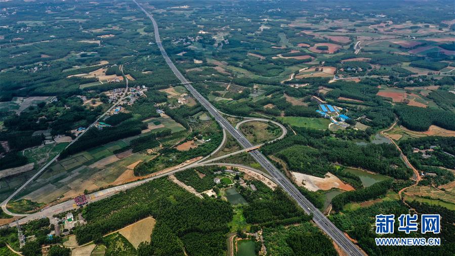 這是4月21日拍攝的合浦縣境內(nèi)的桂海高速公路(無(wú)人機(jī)照片)。暮春時(shí)節(jié),從空中俯瞰廣西北海市合浦縣大地,河流、稻田、蝦塘、道路、村莊星羅棋布、色彩斑斕,美不勝收。新華社記者張愛(ài)林?jǐn)z