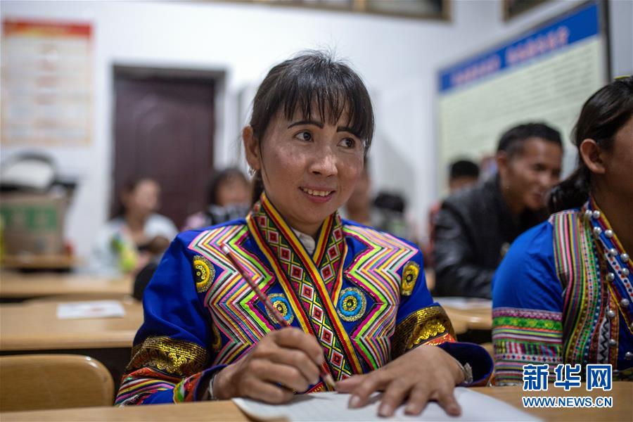 4月10日,在云南省勐海縣布朗山鄉(xiāng)曼囡村曼班三隊(duì),娜四在村里上夜校。新華社記者胡超攝