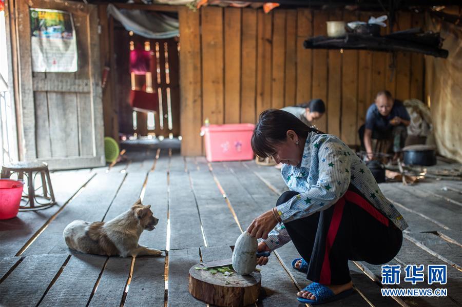 4月12日,在云南省勐??h布朗山鄉(xiāng)曼囡村曼班三隊,娜四在家切菜。新華社記者胡超攝