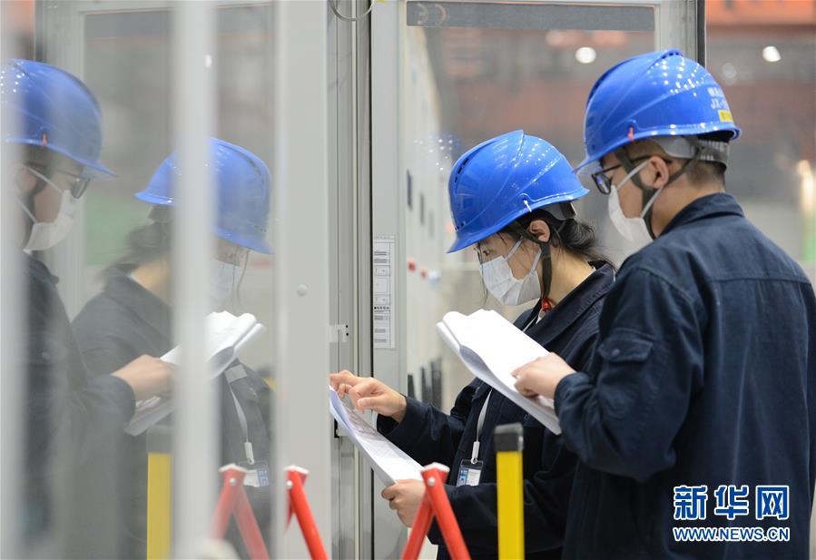 4月24日,技術(shù)人員在施工現(xiàn)場進行設(shè)備檢查。新華社記者韓曉雨攝