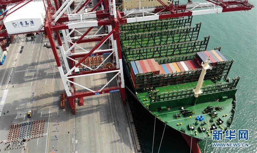 世界最大集裝箱船首航青島港 甲板面積相當(dāng)于3.5個(gè)足球場
