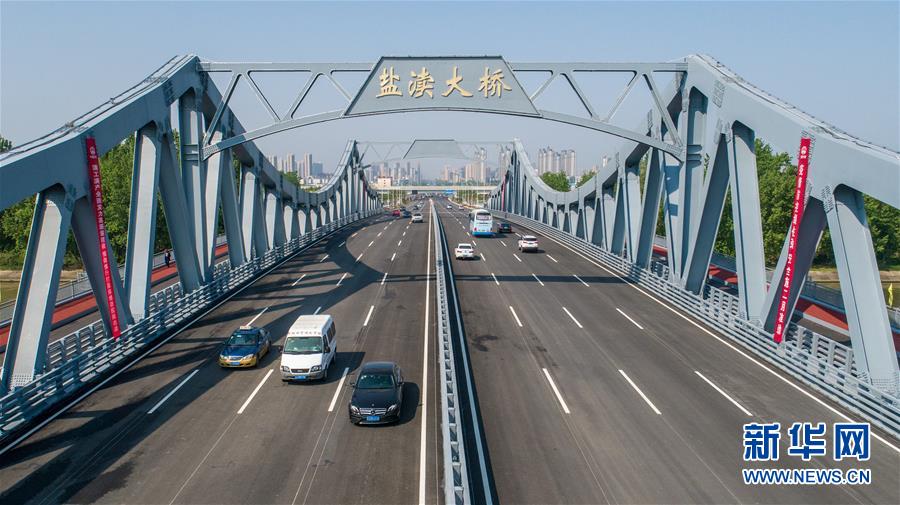這是4月28日拍攝的江蘇省鹽城市鹽瀆大橋(無人機照片)。4月28日,位于江蘇省鹽城市的鹽瀆大橋正式通車。據(jù)介紹,鹽瀆大橋連接鹽城市鹽南高新區(qū)與河?xùn)|新城開發(fā)區(qū),通車后,將緩解附近群眾跨區(qū)繞行的問題,提供出行便利。新華社記者李博攝