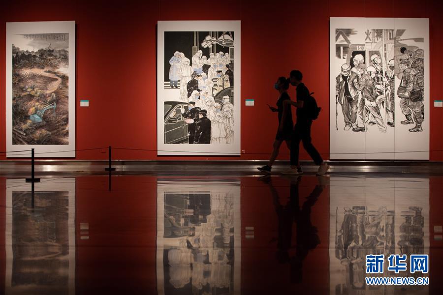 5月2日,觀眾在位于南京的江蘇省美術(shù)館觀看江蘇省抗疫主題美術(shù)書(shū)法精品展?!拔逡弧奔偃掌陂g,人們以多種方式放松心情、享受假日。新華社發(fā)(蘇陽(yáng)攝)