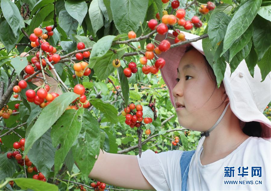 5月2日,一名小游客在江蘇無錫宜興市白塔村櫻桃園采摘櫻桃?!拔逡弧奔偃掌陂g,人們以多種方式放松心情、享受假日。新華社發(fā)(丁煥新攝)