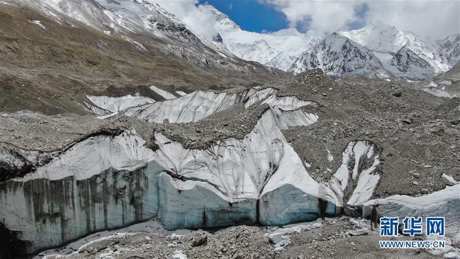 位于珠穆朗瑪峰腳下海拔5400米左右的中絨布冰川(4月30日攝,無(wú)人機(jī)照片)。位于珠穆朗瑪峰腳下海拔5400米左右的中絨布冰川,巍峨壯觀,冰塔林托起世界最高峰,讓人嘆為觀止。新華社記者旦增尼瑪曲珠攝