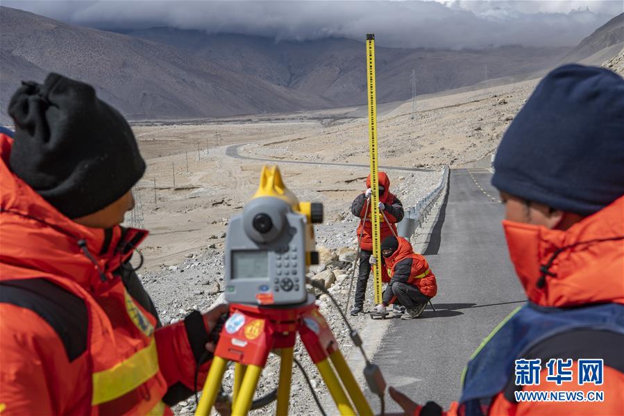 測一大隊隊員在西藏定日縣曲當(dāng)鄉(xiāng)境內(nèi)進行水準(zhǔn)測量(4月18日攝)。水準(zhǔn)測量是一種利用提供水平視線的儀器(如水準(zhǔn)儀、水準(zhǔn)標(biāo)尺),測定地面不同點之間的高差,并以此推算高度的一種方法,是經(jīng)典大地測量的重要技術(shù)之一。在目前正在進行的2020珠峰高程測量中,部分國測一大隊隊員承擔(dān)了水準(zhǔn)測量的任務(wù)。新華社記者孫非攝