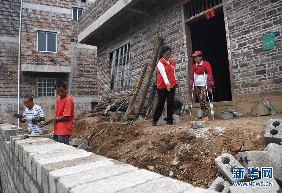 唐莉(右二)在平樂(lè)縣張家鎮(zhèn)老埠村貧困戶(hù)陶仁桂家查看無(wú)障礙設(shè)施改造項(xiàng)目建設(shè)進(jìn)展(5月4日攝)。新華社記者周華攝