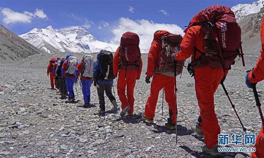 5月6日,登山隊(duì)員們向更高海拔進(jìn)發(fā)。新華社記者普布扎西攝