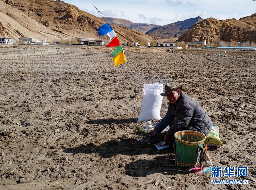 5月4日,西藏扎西宗鄉(xiāng)的格桑老人在春耕儀式上。新華社記者普布扎西攝
