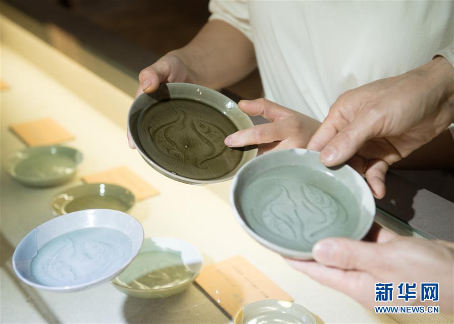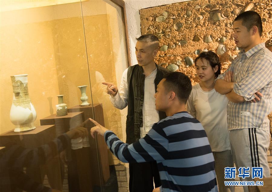 5月7日,瓷器愛好者在龍泉青瓷裝飾紋樣研究所參觀。1965年出生的項宏金,被浙江龍泉年輕一代瓷人稱為“項哥”,他從20世紀90年代開始收集龍泉青瓷標本,研究青瓷紋樣。2014年出版著作《龍泉青瓷裝飾紋樣》,次年開設龍泉青瓷裝飾紋樣研究所,將自己收藏的千余件標本跟瓷器愛好者、創(chuàng)作者免費分享。新華社記者翁忻旸攝