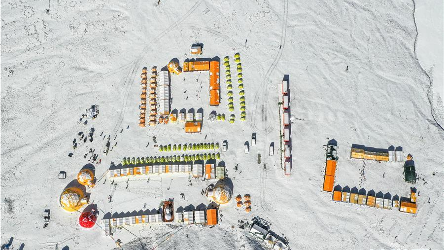 這是海拔5800米的過渡營地(5月8日攝,無人機照片)。珠峰過渡營地海拔5800米,是連接前進營地和珠峰大本營的重要一站。登山愛好者從大本營徒步大約四個小時就能抵達過渡營地。此段路程亂石林立,同時也能欣賞壯美的冰川。新華社記者孫非攝